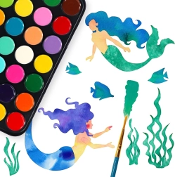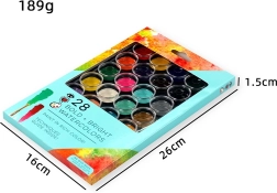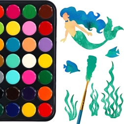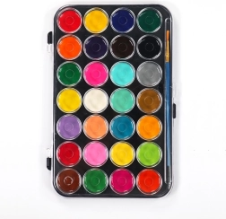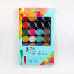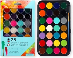 Odkrijte neskončne možnosti igre z barvami in ustvarite svoje izvirne slike. Ta praktičen, kompakten set 28 akvarelnih barv v čudovitih, živahnih odtenkih omogoča vsakomur, da izrazi svojo ustvarjalnost. Set je zaprt v plastičnem ohišju, ki ščiti barve pred izsušitvijo in olajša njihovo vsakodnevno uporabo. Del seta sta čopič in kratek vodnik po akvarelnih tehnikah. Z njim se lahko vsak nauči kombinirati barve in ustvarjati nove odtenke. Je idealno darilo za otroke, prijatelje in vse, ki radi slikajo.