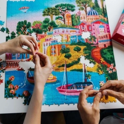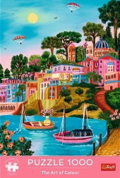 Puzzle TREFL Premium Plus iz serije The Art of Colour (Umetnost barv) prinašajo edinstveno vizualno doživetje z motivom slikovitega otoka Síros v Grčiji. Visokokakovosten karton in natančna tehnologija izrezov zagotavljata, da koščki pašejo le tja, kamor sodijo, povečana debelina pa omogoča lahko premikanje sestavljenih delov brez tveganja, da bi se razsuli.