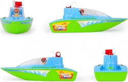 Z nekaj pritiski črpalke čoln izstreli curek vode. Brez baterij, povsem mehansko – varna in zabavna igra v vodi.