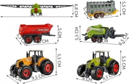 Ta 6-delni kmetijski komplet je idealen za male ljubitelje tehnike in življenja na podeželju. Traktorja in kmetijski stroji z verodostojnimi podrobnostmi podpirajo razvoj fine motorike in otroke učijo o delu na polju ter o reji živali. Deli se med seboj zlahka povezujejo (npr. traktor s prikolico), kar daje igri realističen pridih.