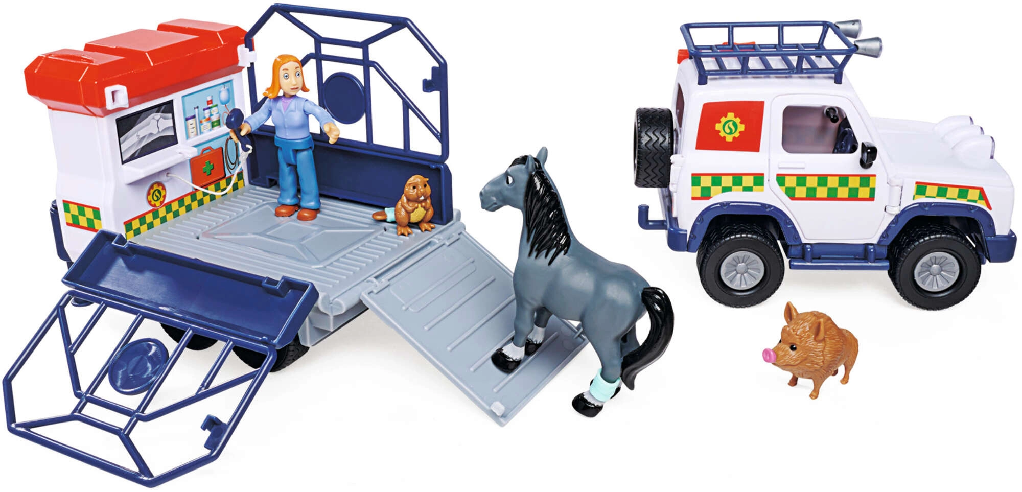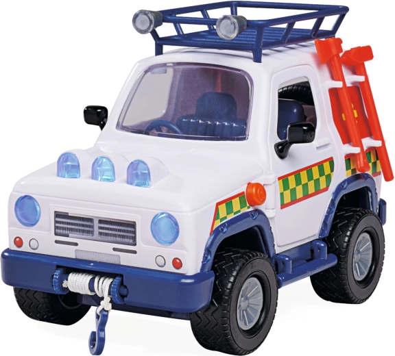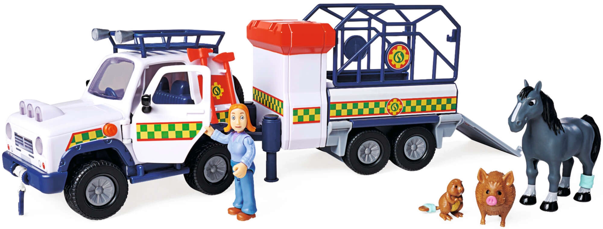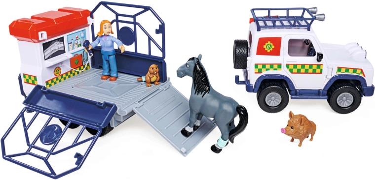 - BOGATA OPREMA: Za volanom džipa sedi Lizzie, ki pomaga ujetim živalim. Na voljo je snemljiva prikolica z gibljivo ploščadjo, na kateri se premikajo priložene 3 figurice: divji prašič, konj in bober.