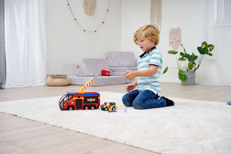 - VELIKO MOŽNOSTI ZA ZABAVO: komplet vsebuje vozilo, figurici gasilca Sama in psa Radarja ter dodatke; avto ima veliko gibljivih delov za raznoliko igro gasilcev.