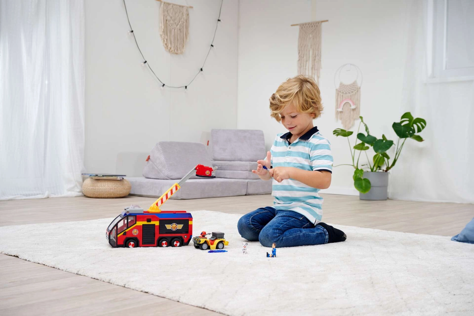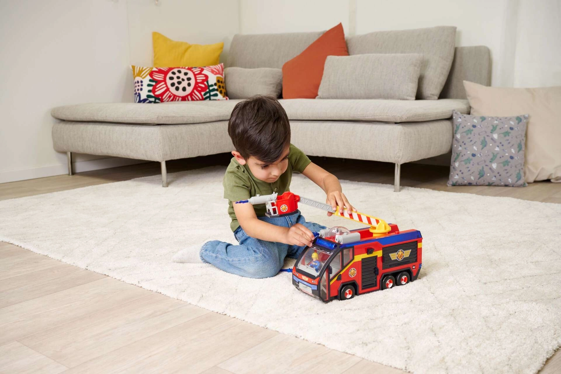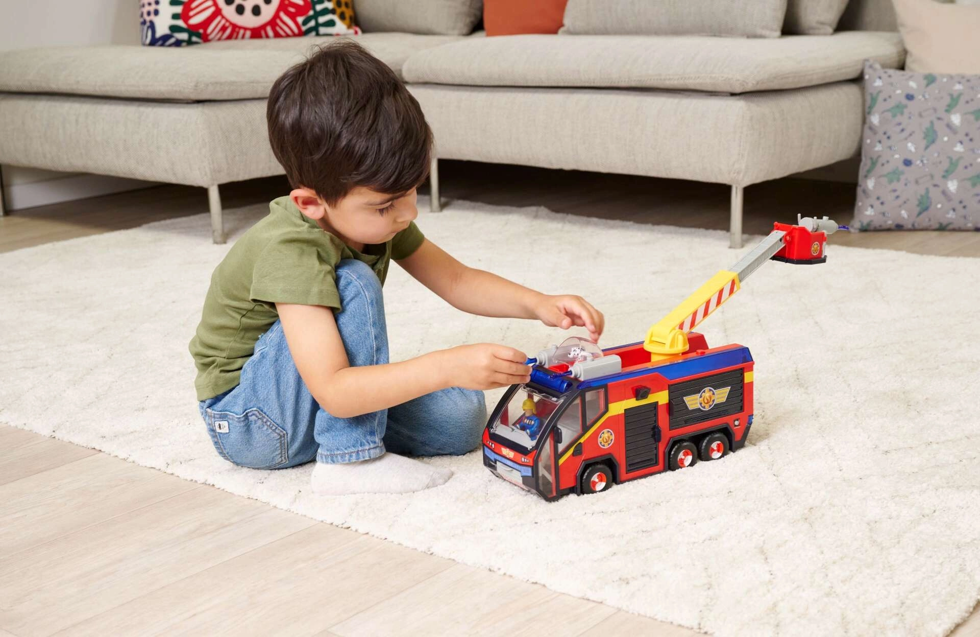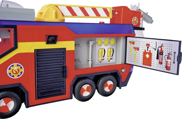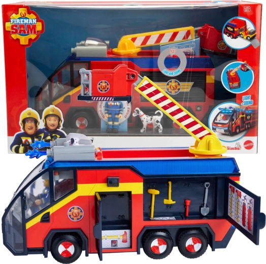 - LICENCIRANA IGRAČA: Najbolj znano vozilo gasilca Sama, Jupiter, v novi izvedbi zvesto odraža vozilo iz 14. sezone serije. Jupiter odlikuje vrtljiva gasilska lestev, ki jo je mogoče raztegniti in vrteti ter ima plastične vodne izstrelke.