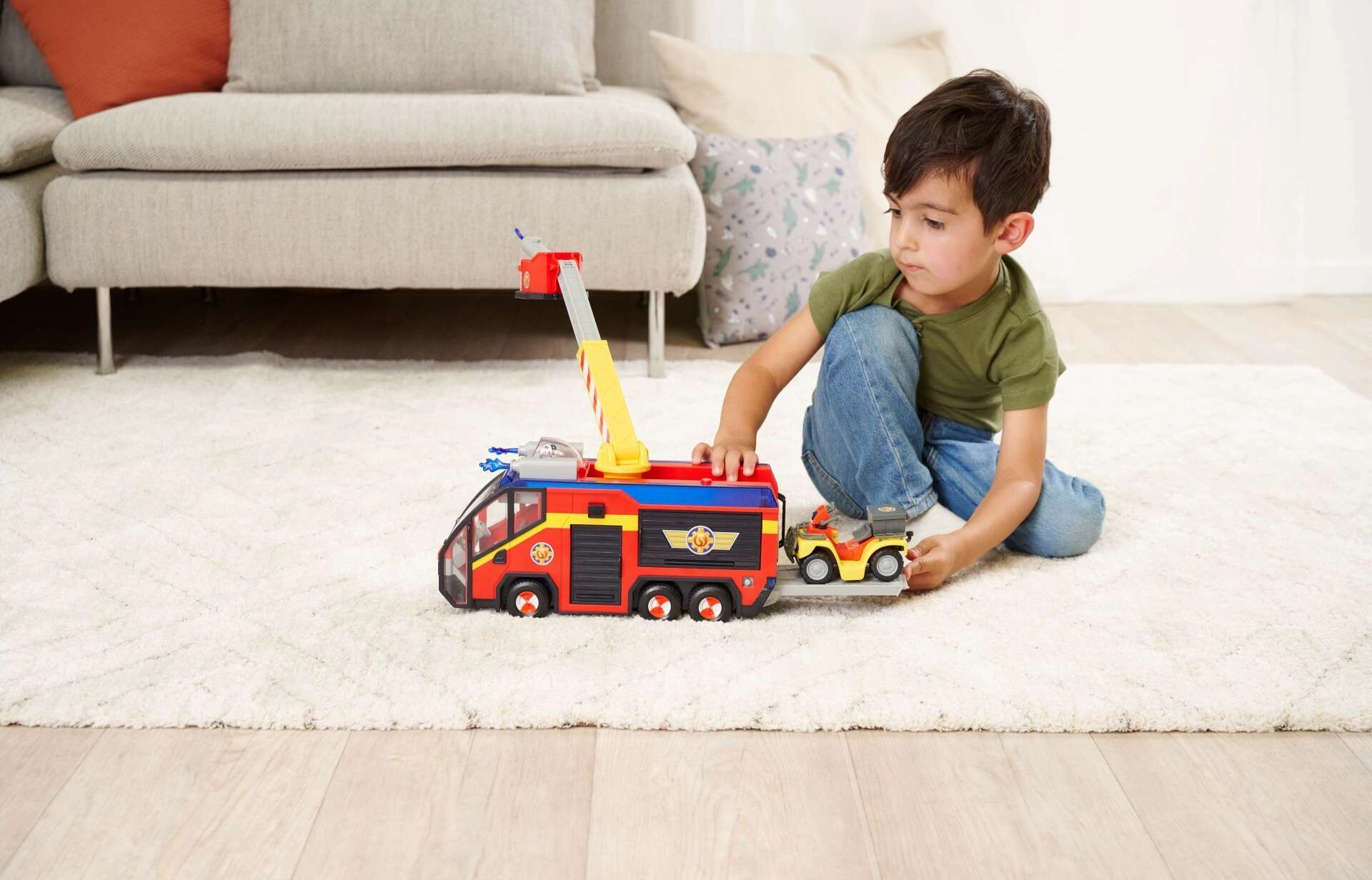 - BOGATA OPREMA: Na voljo je ploščad za štirikolesnik in odlagalni prostor z odpiranjem za shranjevanje gasilskega orodja, pritrjenega na Jupiter, tako da lahko popolno poustvariš s TV-ja znane reševalne misije iz serije o pogumnem junaku gasilcu Samu.