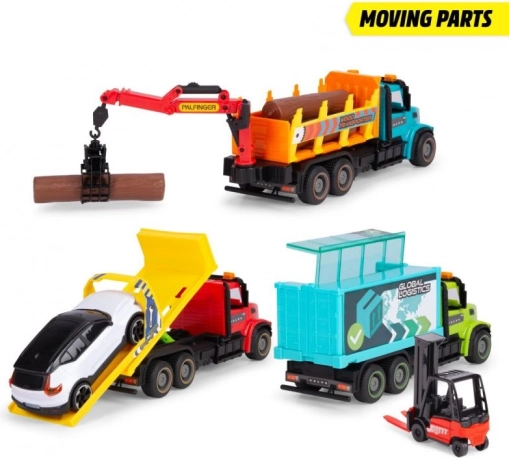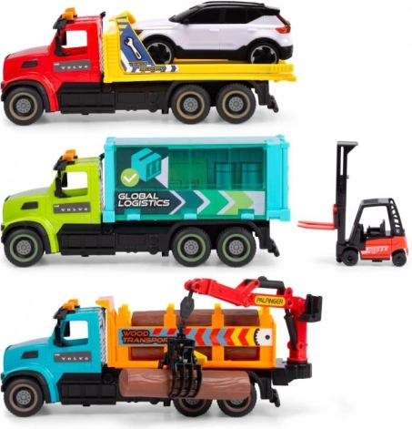 Realistični tovornjak VOLVO dolžine 22 cm znamke Dickie Toys bo z natančno izdelavo in funkcijami za akcijsko igro razveselil male voznike. Na voljo so 3 različne različice z gibalnimi elementi in frikcijskim pogonom – od transporterja avtomobila, preko seta z viličarjem, do vozila za prevoz lesa. Idealen za igro doma, na prostem in v peskovniku.