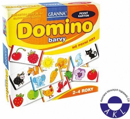 Zabavno slikovno domino znamke GRANNAs pomaga otrokom od 2 let pri učenju barv in imen živali. Posamezni deli iz trdega kartona natančno spadajo skupaj, igra pa razvija logično razmišljanje, fino motoriko in opazovalne sposobnosti. Priložen je navodila za 1 ali več igralcev ter priporočilo Združenja kliničnih logopedov Češke republike.