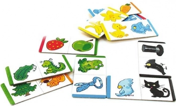 Slikovno domino z barvnimi motivi (npr. rumena račka, modra ribica) je idealna »prva igra« za najmlajše. Otroci ob sestavljanju vadijo razločevanje barv, poimenovanje živali in obenem na nežen način trenirajo motoriko ter koncentracijo. Zahvaljujoč trdemu kartonu je igra vzdržljiva in primerna za vsakodnevno igranje.