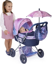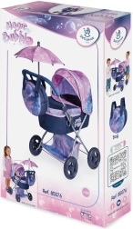 Stilski voziček za punčke iz kolekcije Magic Bubble navduši z nežnim mavričnim dizajnom, zložljivo konstrukcijo in bogatimi dodatki. V kompletu so senčnik, okrogla torbica, vzmetnica ter škatlasta spodnja košara. Zaradi nizkega ročaja in majhne teže je idealen za mlajše deklice od 3 let.