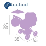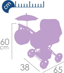 Praktični dodatki spodbujajo domišljijo pri igri: senčnik ščiti punčko, vzmetnica zagotavlja udobje, spodnja košara pa sprejme vse potrebščine. Precizna izdelava in kombinacija kovine, plastike in tekstila zagotavljajo trpežnost in dolgo življenjsko dobo.