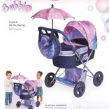 Odkrijte čarobni voziček za punčke z motivom Magic Bubble, ki prehaja od rožnate preko nežne vijolično-modre do kraljevsko modre. Igrivi mehurčki dodajo edinstven videz, okrogla torbica pa se lepo ujema s celotno kolekcijo. Voziček je lahek, enostaven za upravljanje in zaradi zložljive konstrukcije ga zlahka pospravite ali vzamete s seboj na pot.