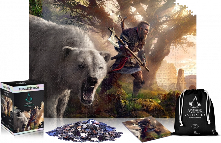 Odkrijte kakovostno sestavljanko, ki bo razveselila vsakega igralca in ljubitelja dizajnerskih ilustracij. Motiv iz ASSASSIN'S CREED VALHALLA prikazuje Eivorja v dramatičnem prizoru s polarnim medvedom. Zahvaljujoč sodobnim tiskarskim tehnologijam slika izstopa z učinkovitimi in živahnimi barvami, medtem ko platneni efekt površine zmanjšuje bleščanje in izboljšuje vidnost detajlov.