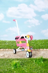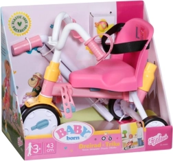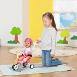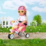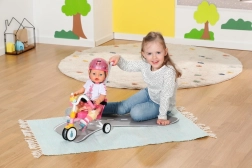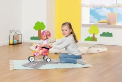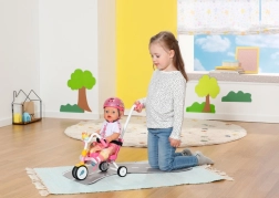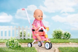 Ta rožnati tricikel je zasnovan za realistično igro s punčkami BABY BORN. Otrok lahko punčko potiska z 45 cm dolgo vodilno palico ali jo pusti “poganjati” s pomočjo paščkov na pedalih. Trdna konstrukcija in stabilno trikolensko podvozje podpirata zanesljivo vožnjo doma in na prostem.