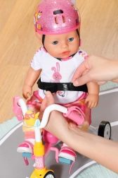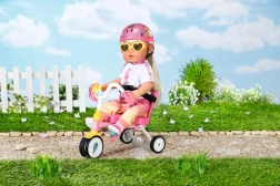 Punčka trdno sedi na mestu zahvaljujoč varnostnemu pasu, nogice pa ostanejo na pedalih zaradi praktičnih paščkov. Idealno za gladko in stabilno vožnjo.