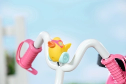 Del kompleta je tudi varnostni pas za zanesljivo pritrjevanje punčke ter vesela trobentica/okras v obliki račke, ki vožnji doda igriv pridih. Tricikel odlično razvija domišljijo, fino motoriko in igro vlog – od dirk z medvedkom do izletov v park.