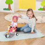 Slogoven tricikel za punčke BABY BORN spremeni vsak sprehod v zabavno avanturo. Zahvaljujoč funkcionalnim kolesom, odstranljivi vodilni palici in varnostnim pasom je vožnja vedno udobna in varna. Prisrčen trobentica v obliki račke poskrbi, da boste vedno opaženi in slišani.