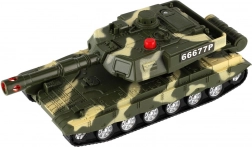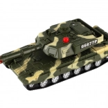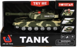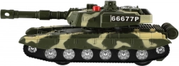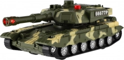 Podajte se v akcijo z robustnim plastičnim tankom na vztrajnik, ki po potisku živahno zdrvi naprej. Vrtljiva kupola z dolgo cevjo in realistični detajli podvozja se prepletajo z učinkovitim svetlobnim in zvočnim spremstvom, ki okrepi vsak igralni scenarij.