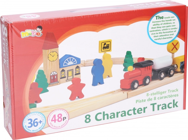 Odkrijte zabavno leseno vlakovno progo v popolnem kompletu 48 kosov, ki bo navdušil male strojevodje in starše. V kompletu so lesni tiri, vlak z vagoni na magnet, figurice, avto, stavba in prometni znaki – vse za ustvarjanje lastnega sveta na tirih.