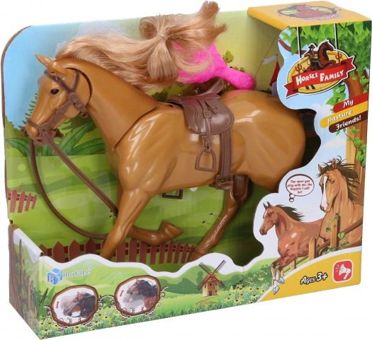 Prisrčen konjiček velikosti 26 cm bo razveselil vsakega malega ljubitelja konjev. Ponuja zvočne učinke ob nagibu glave, v kompletu je glavnik za česanje grive in baterije v paketu. Na voljo v dveh barvnih različicah – temno rjavi in svetlo rjavi.