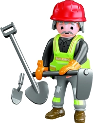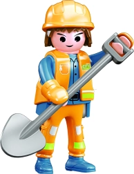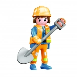 Figura delavec za gradbeni komplet velikosti 7 cm je idealna za vse male gradbenike. Paket vsebuje različne različice in dodatke, kot so orodja in navodila za sestavo.