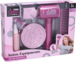 Set vsebuje vse potrebno za ustvarjalno igro – nastavljive nastavke, glavnik in stekleničko za pripravek za lase. Otroci lahko urijo fino motoriko, domišljijo in skrbnost pri “urejanju” frizur. Odlična ideja za darilo za male stiliste.