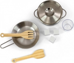 Male kuharje navduši hladilnik z realistično izdelavo ledu, prozoren lonček in 3 kocke. Ne manjkajo ponev, lonec s pokrovko in leseni pripomočki.