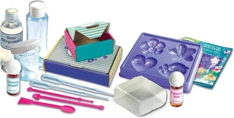 Dišeči znanstveni set za ustvarjanje neverjetnih, ročno izdelanih mil. Vsebuje vse naravne sestavine, potrebne za ustvarjanje zabavnih dišečih kreacij.