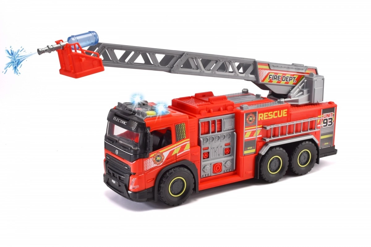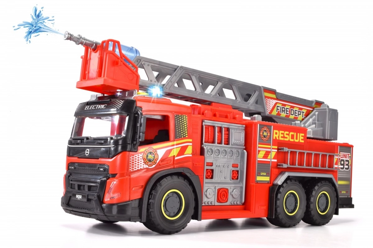 Veliko gasilsko vozilo znamke Dickie Toys, uradno licencirano s strani Volvo, prinaša sodoben dizajn in funkcije za realistično reševalno akcijo. S svetlobnimi in zvočnimi učinki se bo vaš otrok počutil kot pravi gasilec. Del kompleta je tudi vrtljiva in izvlečna lestev, ki omogoča doseganje težko dostopnih mest.