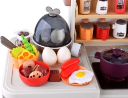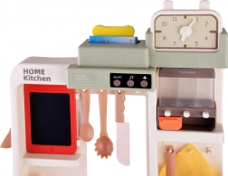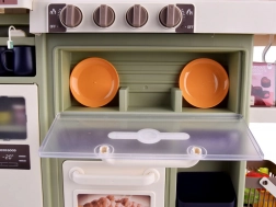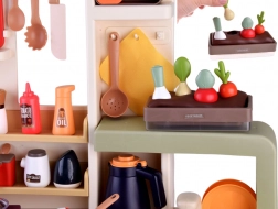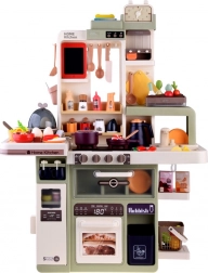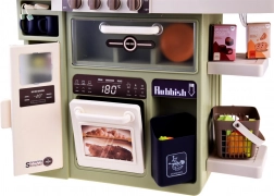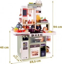 Velika otroška kuhinjica z bogato opremo ponuja malim kuharjem realističen užitek pri igri. Ne manjkajo svetlobni in zvočni učinki, varna para med “kuhanjem”, funkcionalna pipa z vodo v zaprtem krogu in množica kuhinjskih dodatkov (88 kosov). Del kompleta je tudi LED napah z melodijami, štedilnik, pečica, hladilnik, pomivalni stroj in kredna tabla za meni.