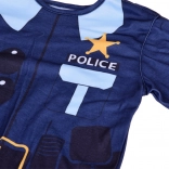 Ta otroški policijski kostum vsakega malega junaka spremeni v pogumnega varuha reda. Moder kombinezon s potiski značke, žepov in napisom POLICE izgleda prepričljivo in je odlična izbira za karneval, rojstnodnevno zabavo ali vsakodnevno preoblačenje.