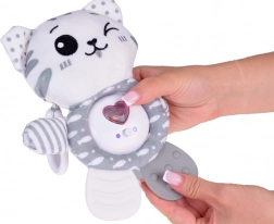 Ta mehek mucek ima v trebuščku srček – po pritisku se oglasijo pomirjujoči zvoki in melodije, ki se z vsakim pritiskom spreminjajo. Telo je iz mehkega pliša z različnimi strukturami za tipno stimulacijo, v notranjosti pa najdete tudi ropotuljico in šelesteče elemente za razvoj sluha.