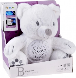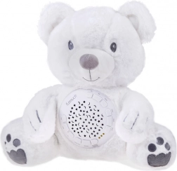 Plišasti beli medvedek s projektorjem – svetilka in uspavanke za dojenčka