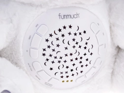 Prisrčen plišasti medvedek s projektorjem spremeni otroško sobo v čarobno deželo sanj. Ponuja pomirjujoče melodije, zvoke narave in barvno projekcijo zvezd in lunic v mavričnih odtenkih. Odličen za mirno uspavanje in kot mehek prijatelj podnevi in ponoči.