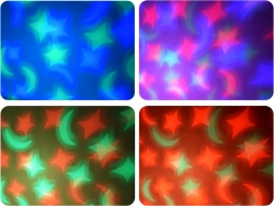 Barvna projekcija zvezd in lune (rdeča, rožnata, zelena, oranžna, modra)