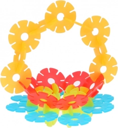Ta ustvarjalni gradbeni komplet s 140 barvnimi deli v obliki kosmičev otrokom omogoča ustvarjanje 3D konstrukcij, rož, živalic, mostov in preprostih hišk. Zaradi enostavnega povezovanja si otroci urijo fino motoriko, logično razmišljanje in potrpežljivost, ob tem pa se odlično zabavajo.
