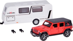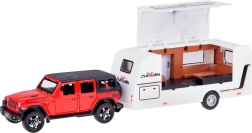 Set terenskega vozila s prikolico prinaša otrokom realistično igro potovanja in kampiranja. Kovinsko-plastična izvedba zagotavlja vzdržljivost in dolgo življenjsko dobo, medtem ko luči in zvoki še okrepijo doživetje vožnje. Zahvaljujoč pull-back pogonu je dovolj, da avtomobilček potegnete nazaj in spustite – sam zapelje naprej.