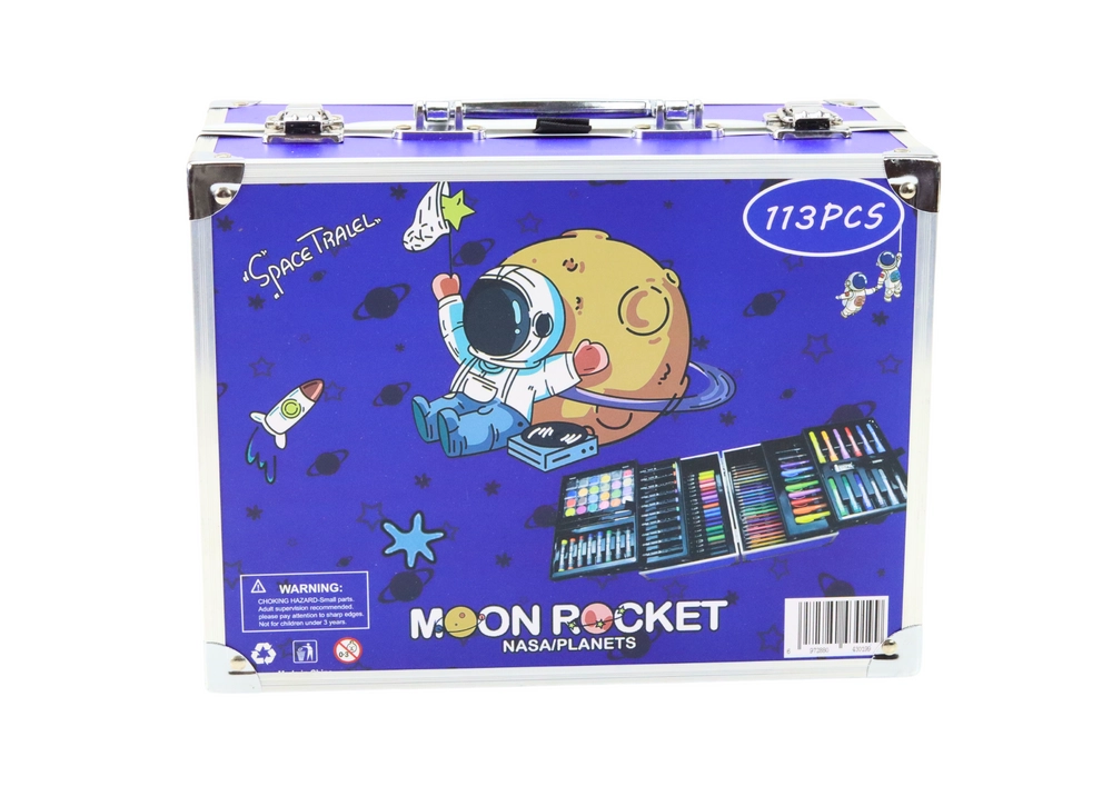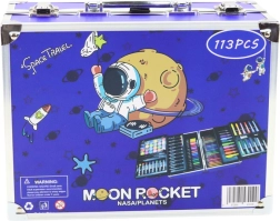 Umetniški set v zložljivem kovčku.Umetniški set v zložljivem kovčku z vesoljskim motivom. Je idealno darilo za vsakega malega umetnika, ki ga popelje v svet domišljije in ustvarjalnosti!
