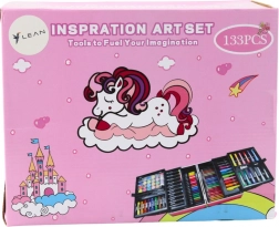 Umetniški komplet v razširljivem kovčku.Umetniški komplet v zložljivem kovčku, okrašen s čudovitim motivom enoroga. Je idealno darilo za vsakega malega umetnika, ki ga popelje v svet domišljije in ustvarjalnosti!
