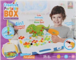 V pakiranju najdete 188 delov (vijaki, matice, kapice), izvijač, ključ in 3 živalice za sestavljanje. Vrtalnik deluje na 2× AA baterije (niso priložene). Celoten komplet je shranjen v škatli velikosti približno 31 × 24,6 × 6,5 cm.