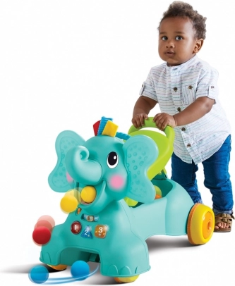 Ta vsestranski poganjalec 3v1 v obliki slona prinaša otrokom od 6 mesecev do malčkov veliko zabave in podporo pri razvoju. Sprva kot aktivnostno središče, kasneje kot stabilna hodulja z udobnim ročajem in nazadnje kot poganjalec za samostojno vožnjo. Zahvaljujoč premišljeni zasnovi se igrača prilagodi tempu rasti in spretnostim otroka.