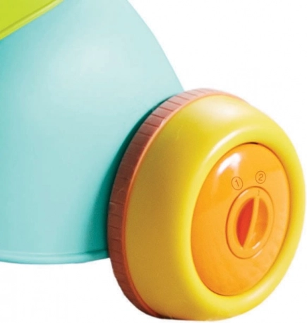 Ena igrača za tri stopnje razvoja: od 6 mesecev kot aktivnostno središče, od 12 mesecev kot hodulja z oporo in od 16 mesecev kot poganjalec. Dovolj je spremeniti način uporabe in igrača se prilagodi otrokovi spretnosti.