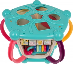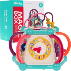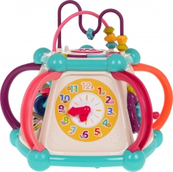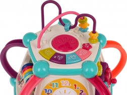 Zahvaljujoč svetlobnim in zvočnim učinkom (melodije, bobenček, živalski zvoki, ropotanje in klikanje ob premikanju elementov) igrača spodbuja čute in motivira k ponovnemu raziskovanju. Otroci vadijo fino motoriko, logično razmišljanje, prepoznavanje oblik, barv in števil ter zaznavanje časa. Idealno darilo, ki raste z otrokom in prinaša ogromno možnosti za igro.
