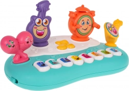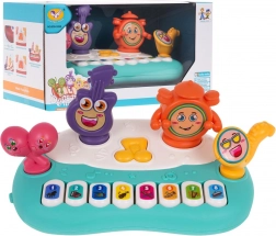 Vsaka tipka predvaja drug instrument, kar spodbuja razlikovanje zvokov in prve glasbene poskuse.
