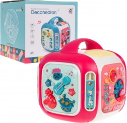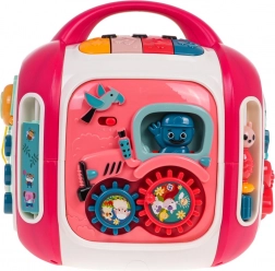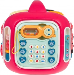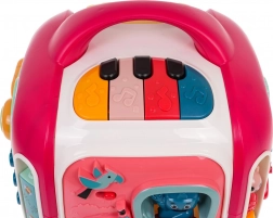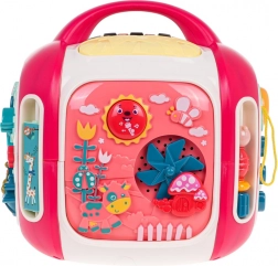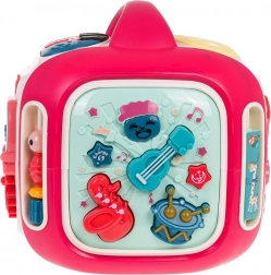 Vsaka stranica škatle ponuja drugačen način odkrivanja: glasbena plošča s kitaro, saksofonom in bobnom s svetlobnimi učinki, odstranljiv »telefon« s številkami 0–9 in gumbi z živalmi ter prevoznimi sredstvi, stranica s traktorjem in zobniki za razvoj koordinacije ter stranica s sončkom in vetrnico za predvajanje melodij. Na zgornji strani je občutljiv klavirček s 3 načini (lestvica, naključno predvajanje, glasbeni način) in mešalnik zvoka.