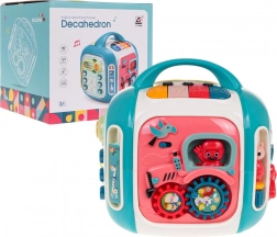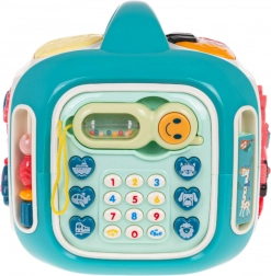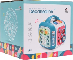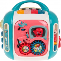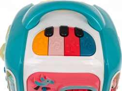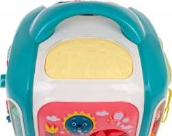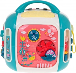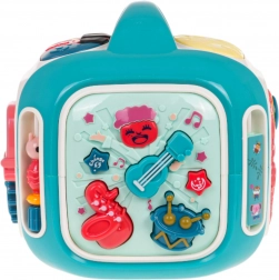 Interaktivna kocka je zasnovana za zabavo in učenje. Otroci odkrivajo barve, oblike, imena živali in prevoznih sredstev, urijo prstke na vrtljivih elementih ter spoznavajo različne melodije in zvoke. Zgornja plošča s klavirčkom ponuja 3 načine in občutljive tipke za enostavno igranje.