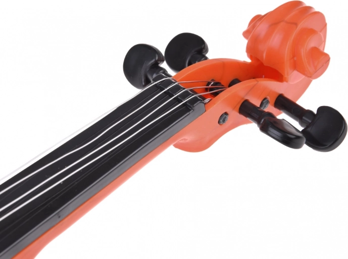 Oranžno ohišje s črnim ubiralnikom in strunikom izgleda kot prave violine – motivira otroke k igri in učenju.