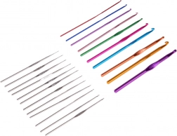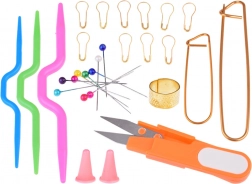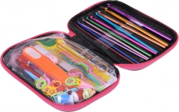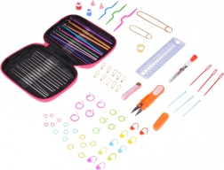 Set vsebuje vse dodatke potrebne za kvačkanje - meter, varne škarje, igle, bucike, centimetre, naprstke in mnogo drugega, da boste lahko ustvarjali s profesionalnim pridihom.