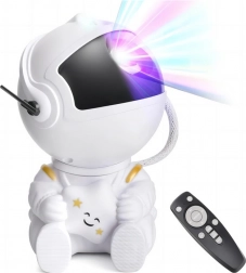 Astronavt projicira barvite meglice in zvezde, ki spremenijo vsak prostor v mirno vesoljsko sceno za uspavanje in sprostitev.