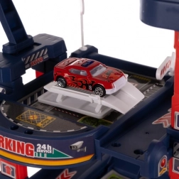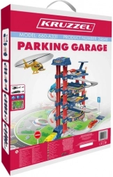 Štiri-nadstropne garaže KRUZZEL navdušijo z modernim dizajnom, trdno konstrukcijo in premišljenimi detajli za realistično igro. Vsako nadstropje ima ograjo proti izpadanju avtomobilčkov, na strehi je heliport in po celotni trasi ne manjka prometne signalizacije. Široke, idealno oblikovane rampe omogočajo gladek spust od najvišjega nivoja do tal.
