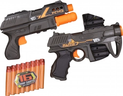 Komplet je idealen za sorojence ali prijatelje – v paketu je kar 16 penastih nabojev, tako da lahko začnete igrati takoj. Mehki penasti izstrelki so prijazni do okolice in primerni za varno zabavo doma in zunaj.