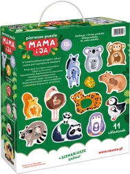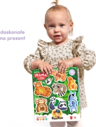 Prve sestavljanke Mama in jaz so odlična izobraževalna zbirka za najmlajše raziskovalce in odlična ideja za prve sestavljanke. Vsebuje 11 velikih dvodelnih sestavljank z odprtino. Igra temelji na prilagajanju različno oblikovanih koščkov odprtinam.